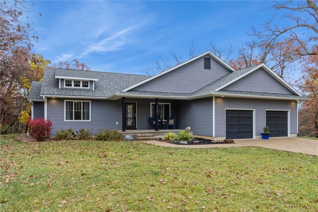 Welcome to this beautiful 3-bedroom, 3-bathroom walk-out ranch-style home, set on a peaceful 3-acre wooded lot within the sought-after College Community School District. Built in 2016, this home offers nearly 2,000 square feet of finished space on the main level, combining modern comfort with natural surroundings. Inside, the open-concept floor plan lets you take in serene views of the backyard from every corner. The eat-in kitchen includes a breakfast bar that opens to a spacious living room, a large walk-in pantry, a coffee bar, and stainless steel appliances, including a gas range with an exterior vent. The primary bedroom is a relaxing retreat, complete with a private en-suite bathroom featuring a large vanity, a floor-to-ceiling tiled shower, and a walk-in closet. Two additional bedrooms and a fully tiled second bathroom are also located on the main level. The laundry room is conveniently placed just off the primary bedroom and right off the oversized 28x28-foot, 2-stall attached garage. The walk-out basement provides roughly 1,500 square feet of additional living space, ready to be finished to fit your needs. There???s room for an extra bedroom and a large rec room. Already completed in the lower level is a finished bathroom, ample storage shelves, and a workshop area with a built-in workbench. The charming front porch is perfect for morning coffee, while the back deck offers a relaxing spot to enjoy your private wooded oasis. The property also includes a heated, insulated, and wired 2-stall detached garage, a storage shed, and a 3-stall utility shed for all your outdoor tools and equipment. This home truly has it all!